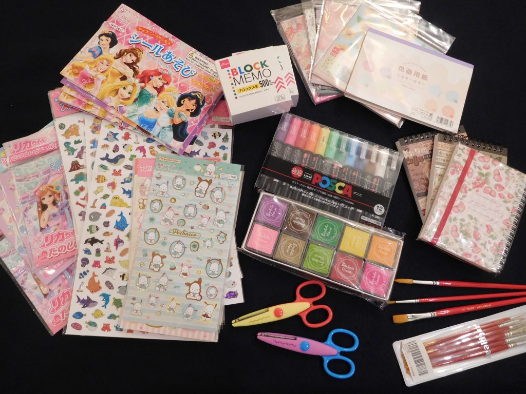 デザインペーパー、コラージュ素材ほか 画材寄付 2026年3月2日 福岡県 F様 数回に渡り多数の画材寄付をいただき、大変ありがとうございました。 お手数をお掛け致しました。順次、各所にお届しております。 ■ 寄付内容 デザインペーパー、折り紙、ディズニープリンセスシールあそび、ステッカー、VAN GOGH丸筆、平筆、artgear筆6本セット、uni極細ポスカ、ギザギザハサミ、リングノート、ブロックメモ、コラージュ素材多数